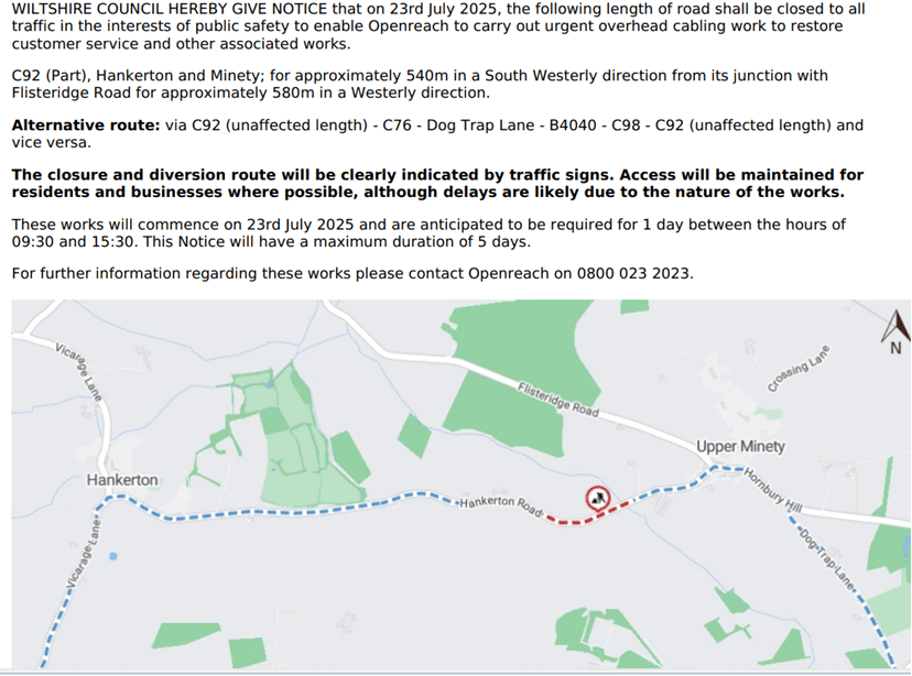 Cloatley Road Closed Tomorrow