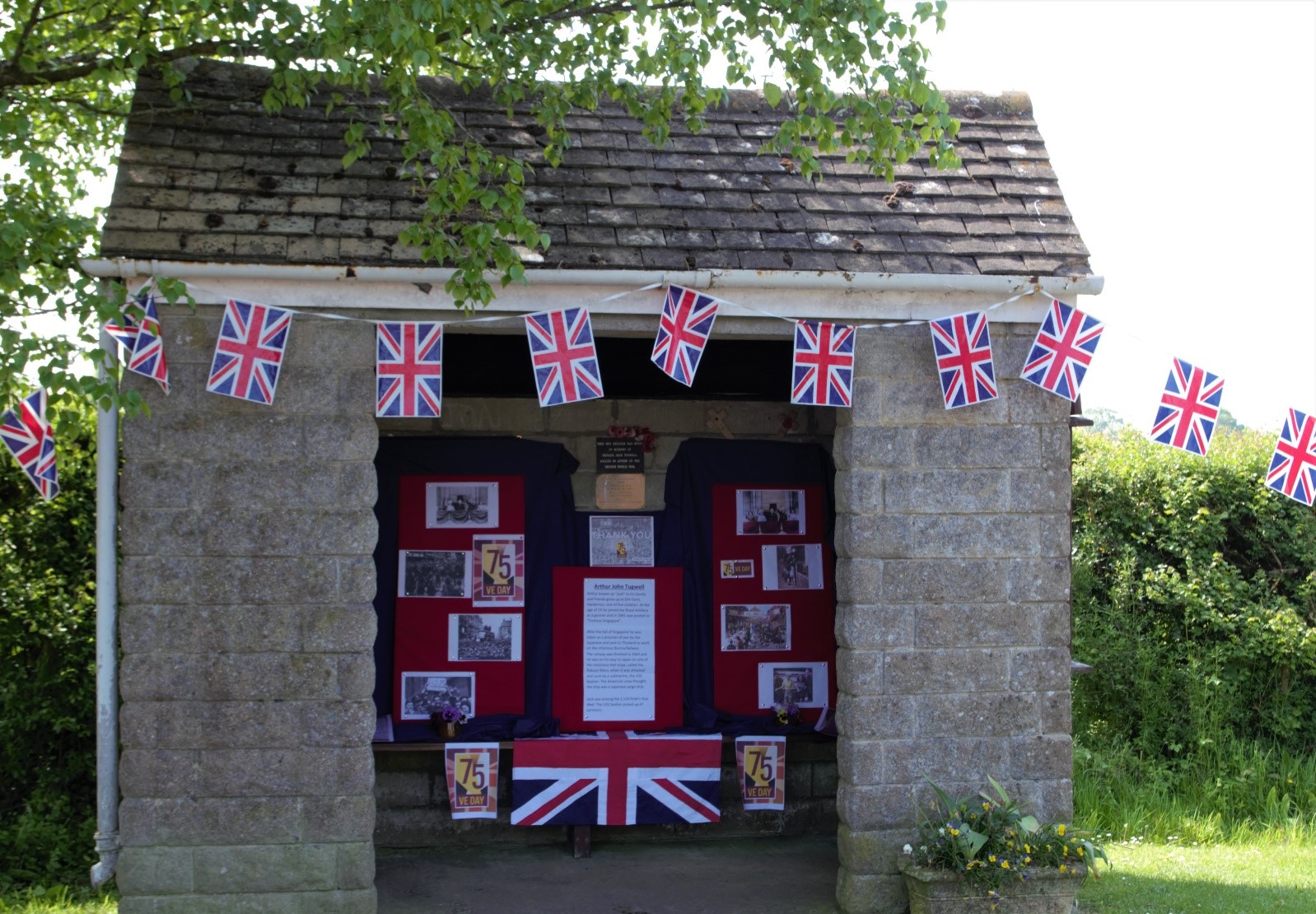 Sue Wood, Bunny Lees-Smith and Peter Wyman, on behalf of the history group, put together an excellent mini-exhibition in the bus shelter. It was colourful, informative and acted as a chance to remember ‘Jack’ ( Arthur John) Tugwell whose commemorative plaque is on the wall.